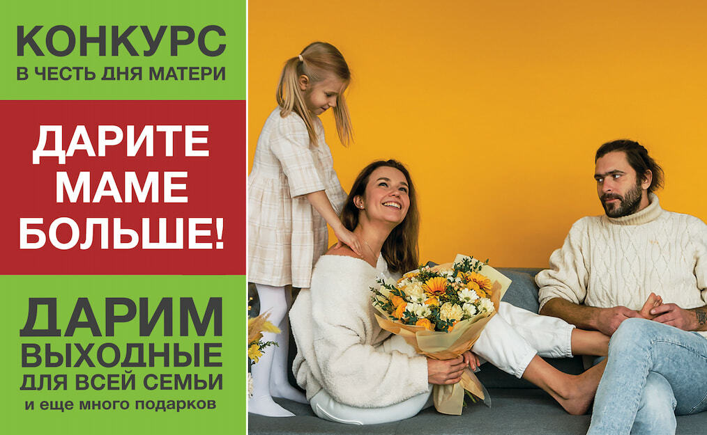 Дарите маме больше подарков! Выиграйте главный приз для любимой мамы — уикенд в Нечкино с ужином у камина! Проведите время семьёй, окружите её любовью и заботой в уютной обстановке. И еще 26 призов!